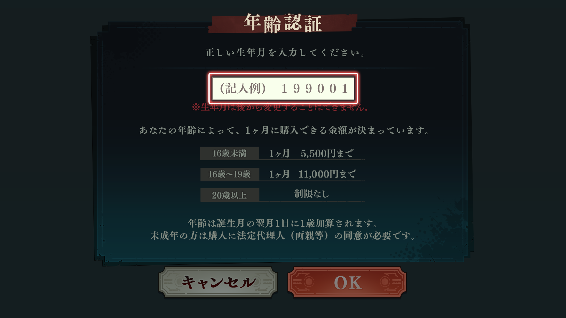 [廻珠ショップ] にて表示される年齢認証を入力