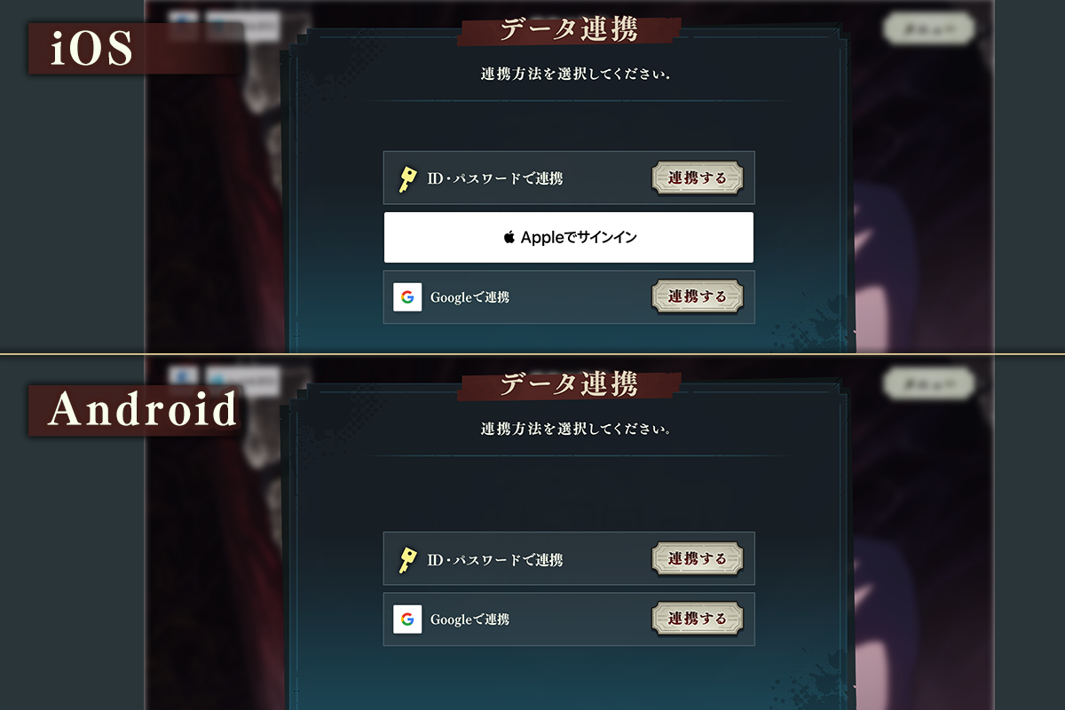 ゲームで使用したアカウントでログインしてください